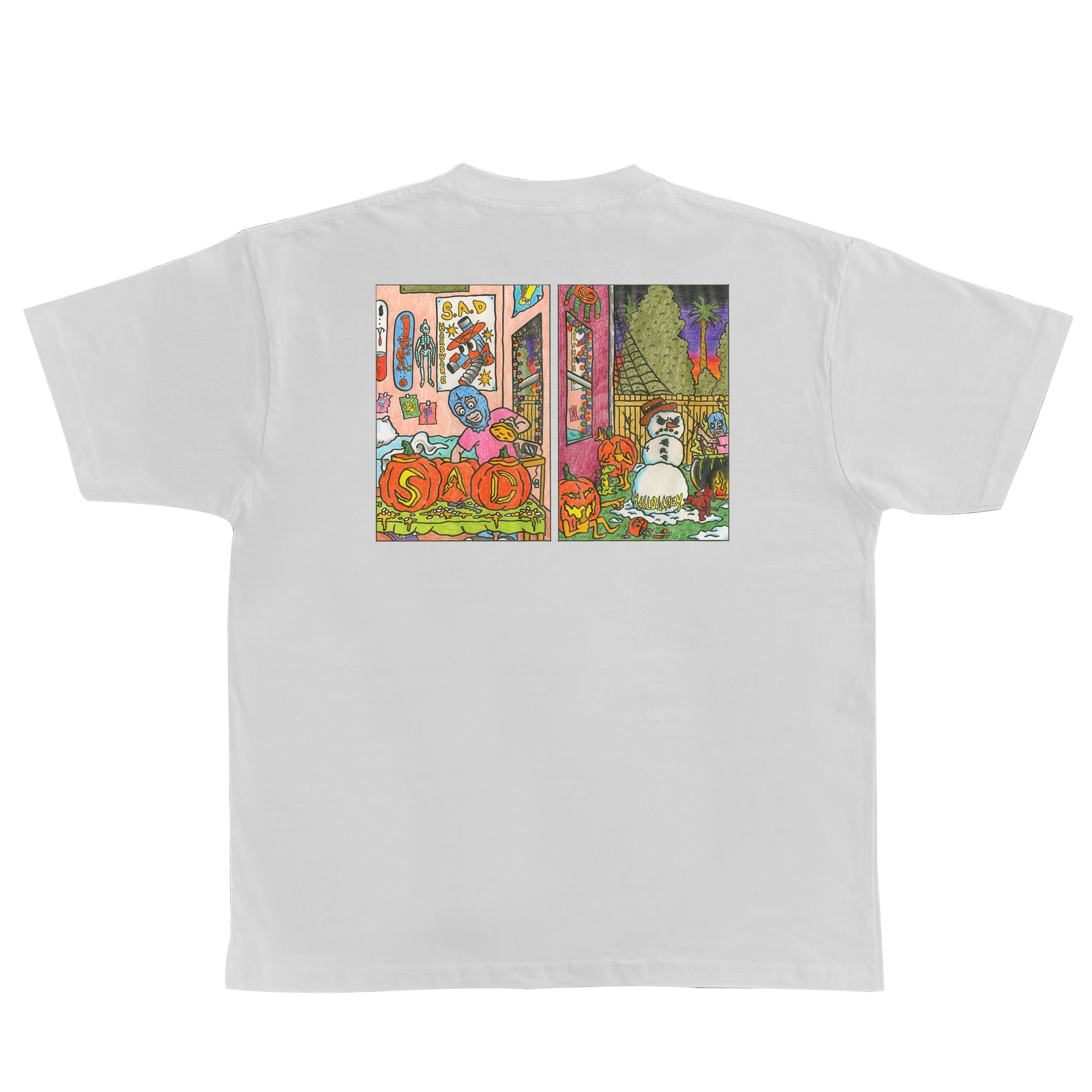 screen printed / DTG on pre shrunk heavy cotton t shirt, made in LA. Shirt runs slightly oversized